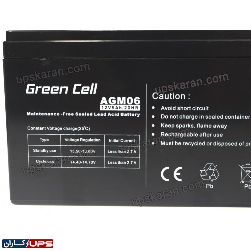 باتری 12 ولت 9 آمپر گرین سل که یکی از برندهای قدیمی تولید باتری یو پی اس و پاوربانک در کشور چین میباشد و محصولات آن از کیفیت خیلی خوبی برخوردار است. این باتری توسط یو پی اس کاران با گارانتی یکساله ارائه میشود.